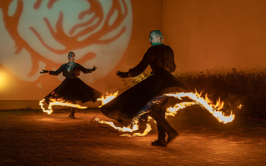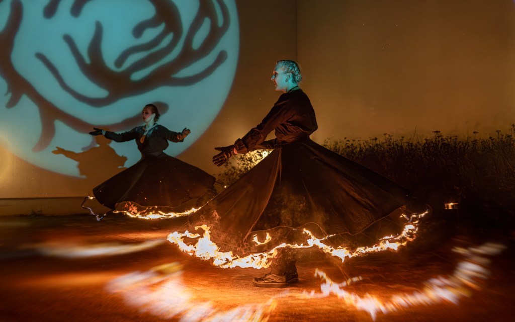Tilattava tuliesitys on noin 10 minuutin mittainen esitys, jossa manipuloidaan tulivälineitä samalla tanssien. Esitys huipentuu hypnoottiseen pyörintään palavissa hameissa. Esityksen hinta 870€ (alv 0%) + kilometrikorvaus.