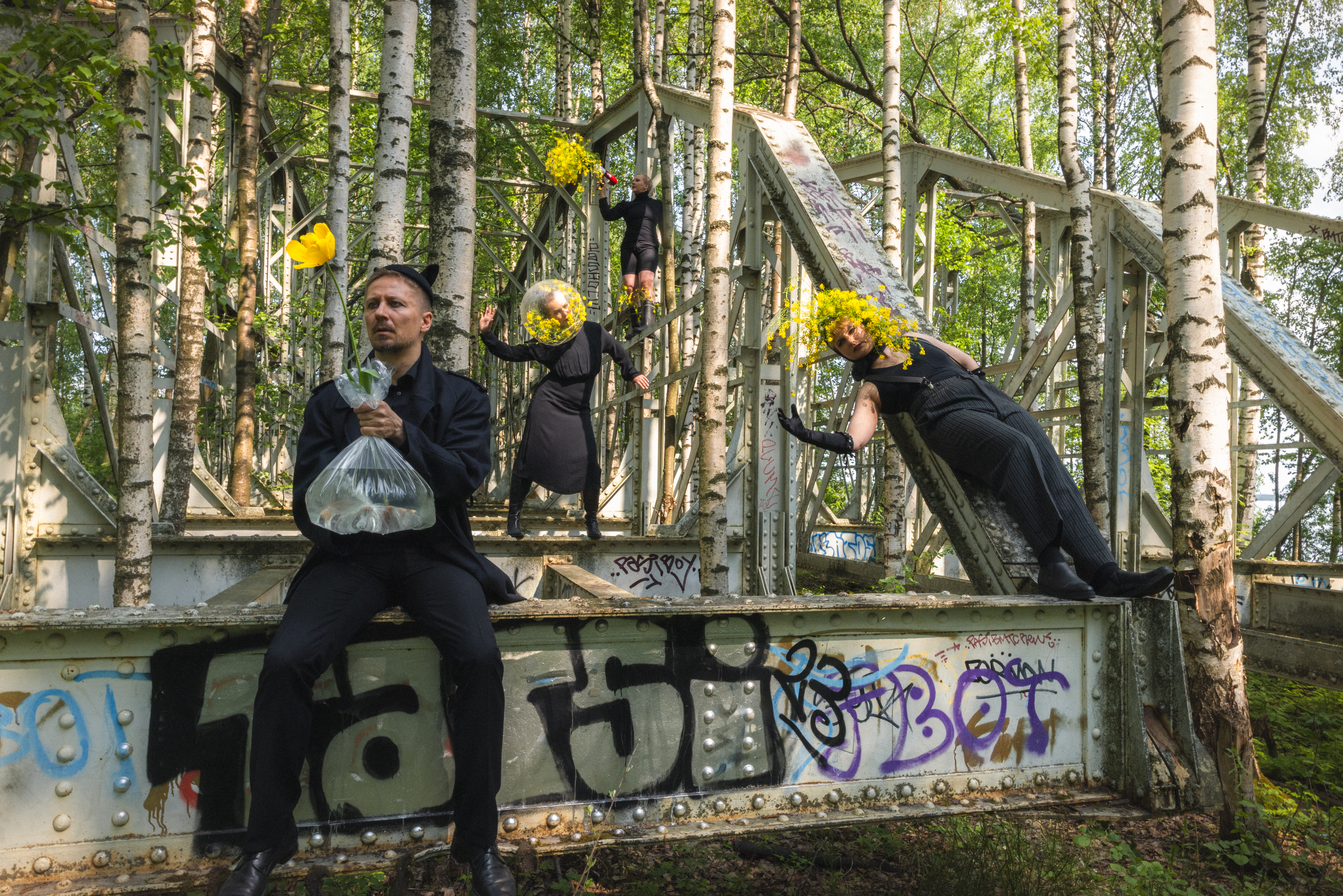 Lasse Forsgren (esiintyjä, äänisuunnittelija), Jaana Kurttila (skenografi), Veera Lamberg (esiintyjä), Anssi Pöyhönen (valosuunnittelija), Maiski Tiainen (esiintyjä), Katarina Suviniitty (esiintyjä)